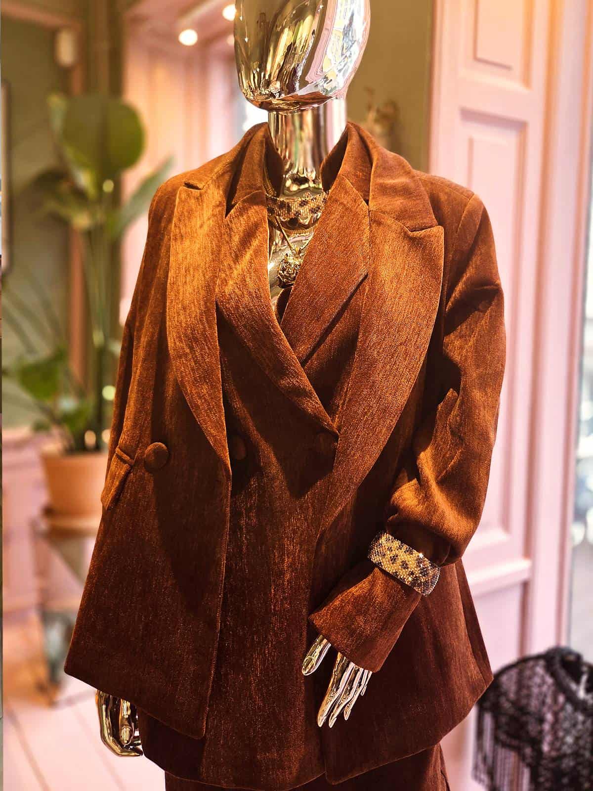 Brun babyfløjl blazer fra HUNKØN. Elegant, afslappet pasform.